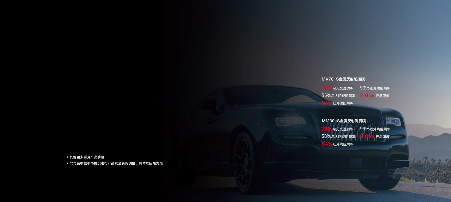 十二層貴金屬,多層磁控濺射技術(shù),環(huán)保節(jié)能,超強(qiáng)隔熱防爆且提升整體車輛質(zhì)感與美觀度,更能有效防止破碎玻璃飛濺對駕駛員的二次傷害。車輛整體更美觀、更高端、更安全。